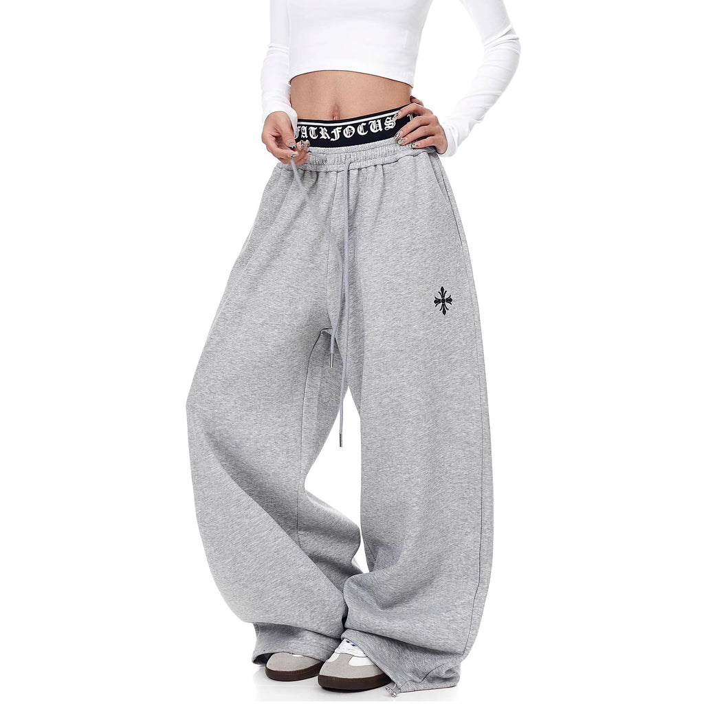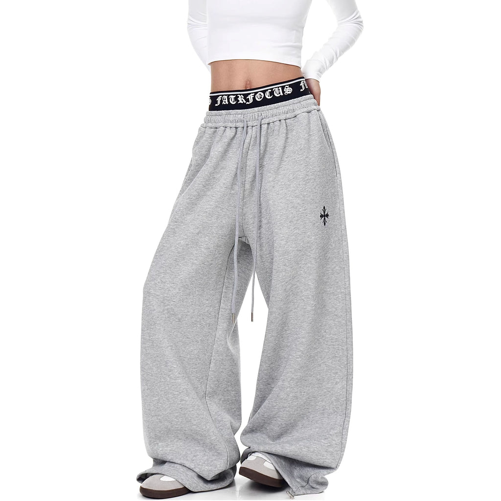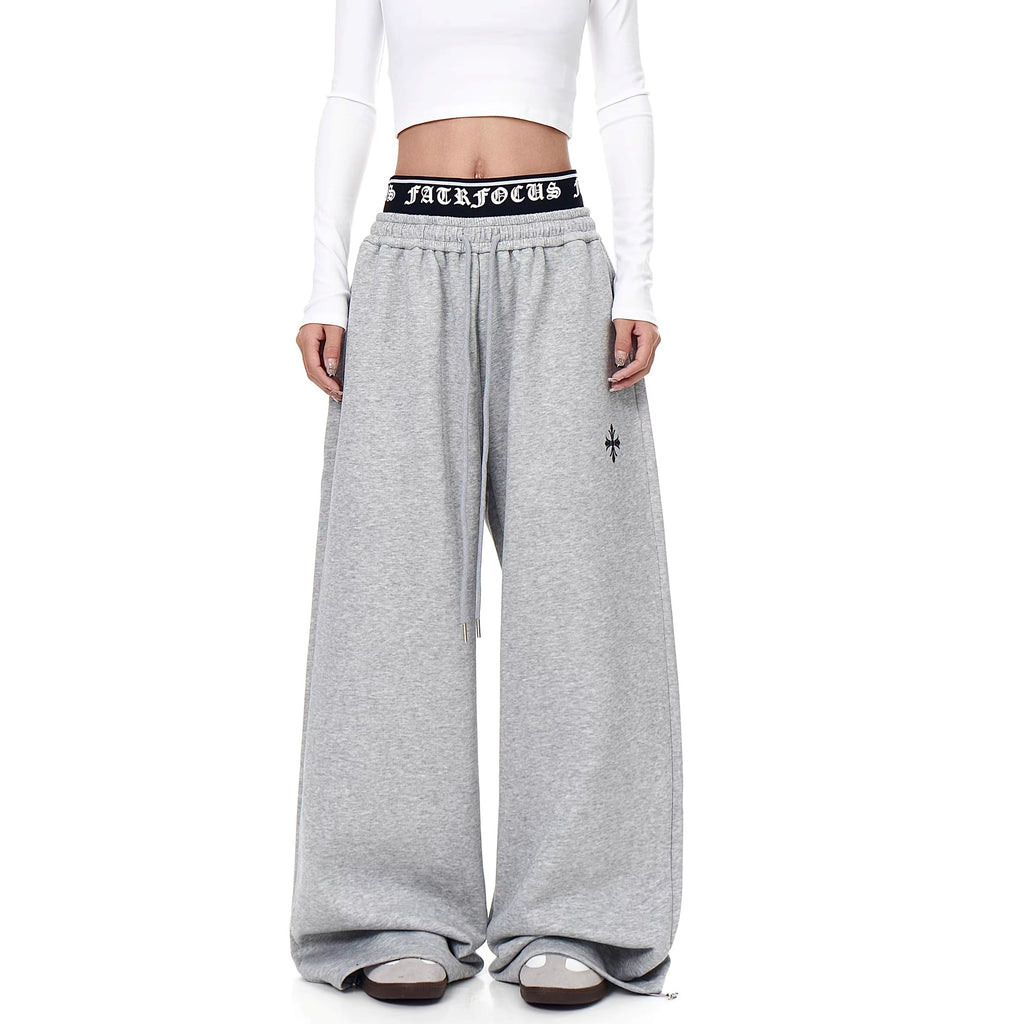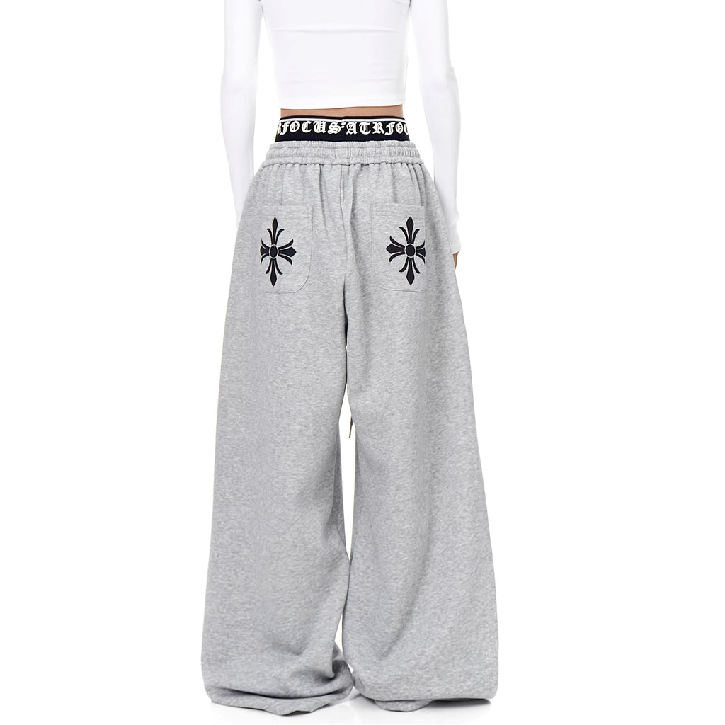 Cross Print Double-Waist Band Sweat Pants MW10389