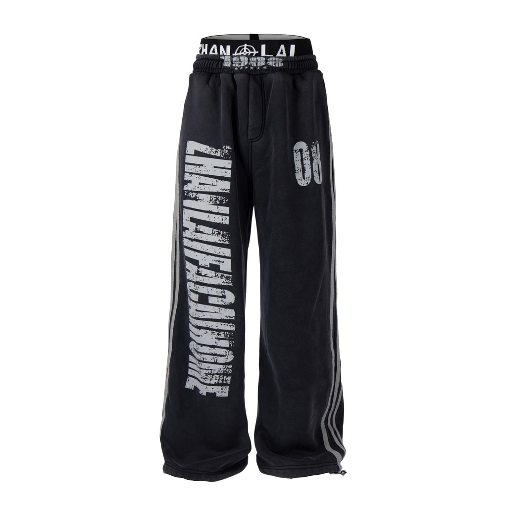 Dirty Distressed Printed Double Waist Sweat Pants BK7041