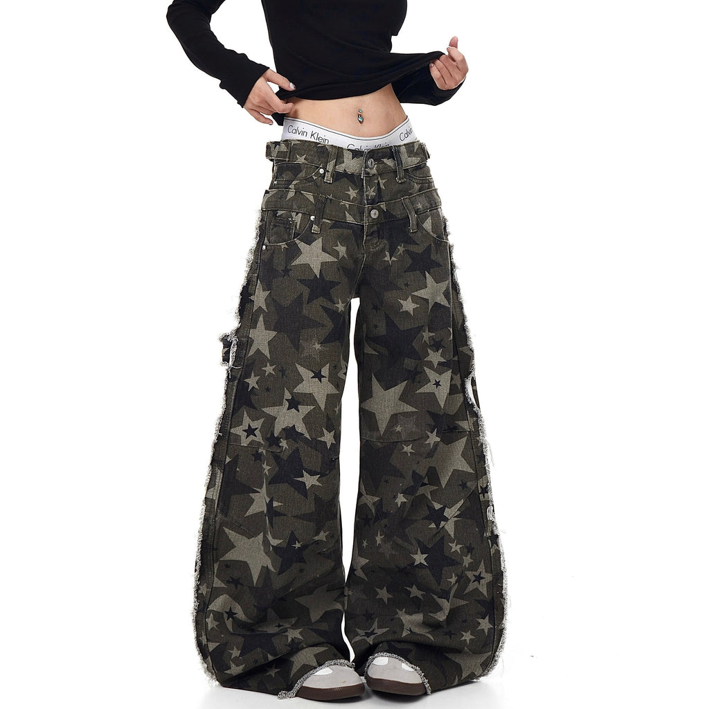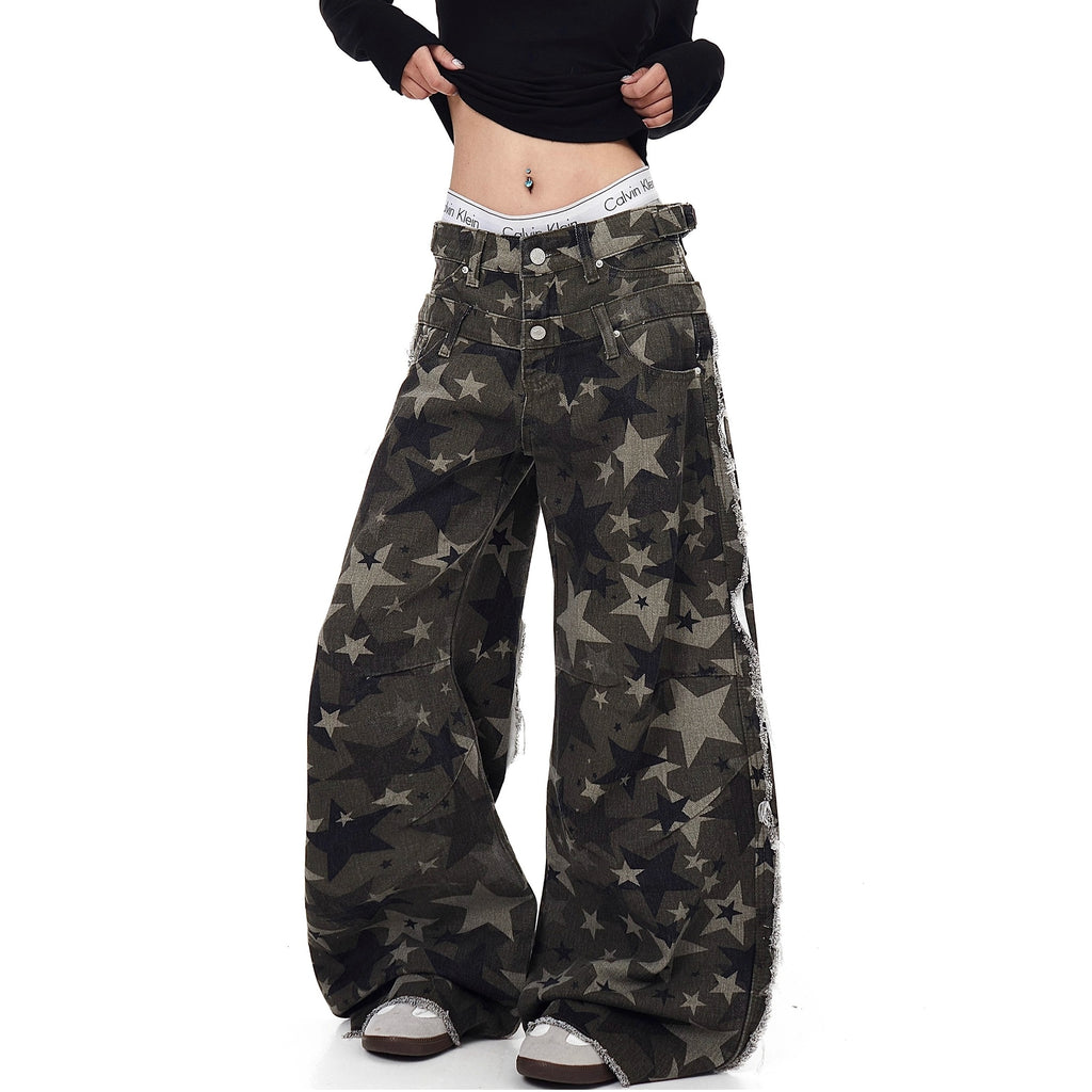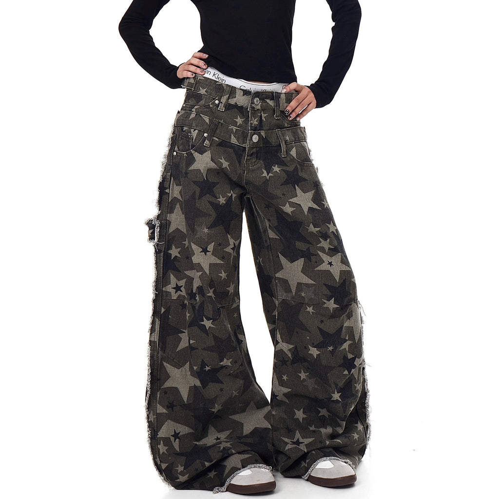 Double Waist Spliced Star Camouflage Cargo Pants BK7039