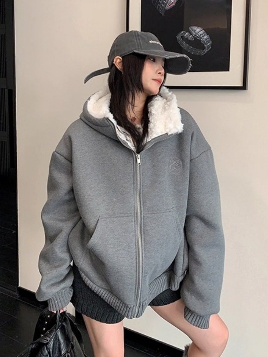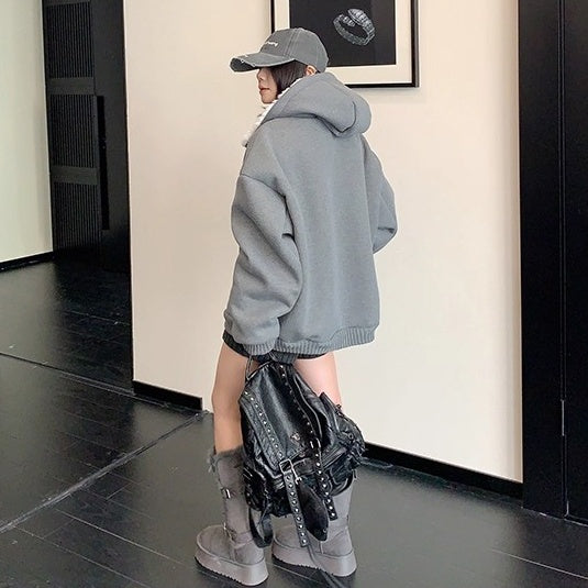Inner Hairy Thickened Oversize Hooded Jacket OS2065