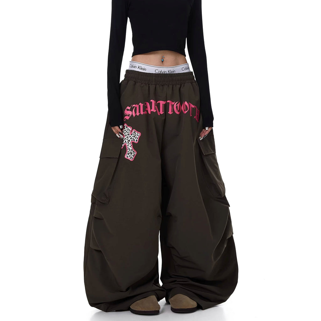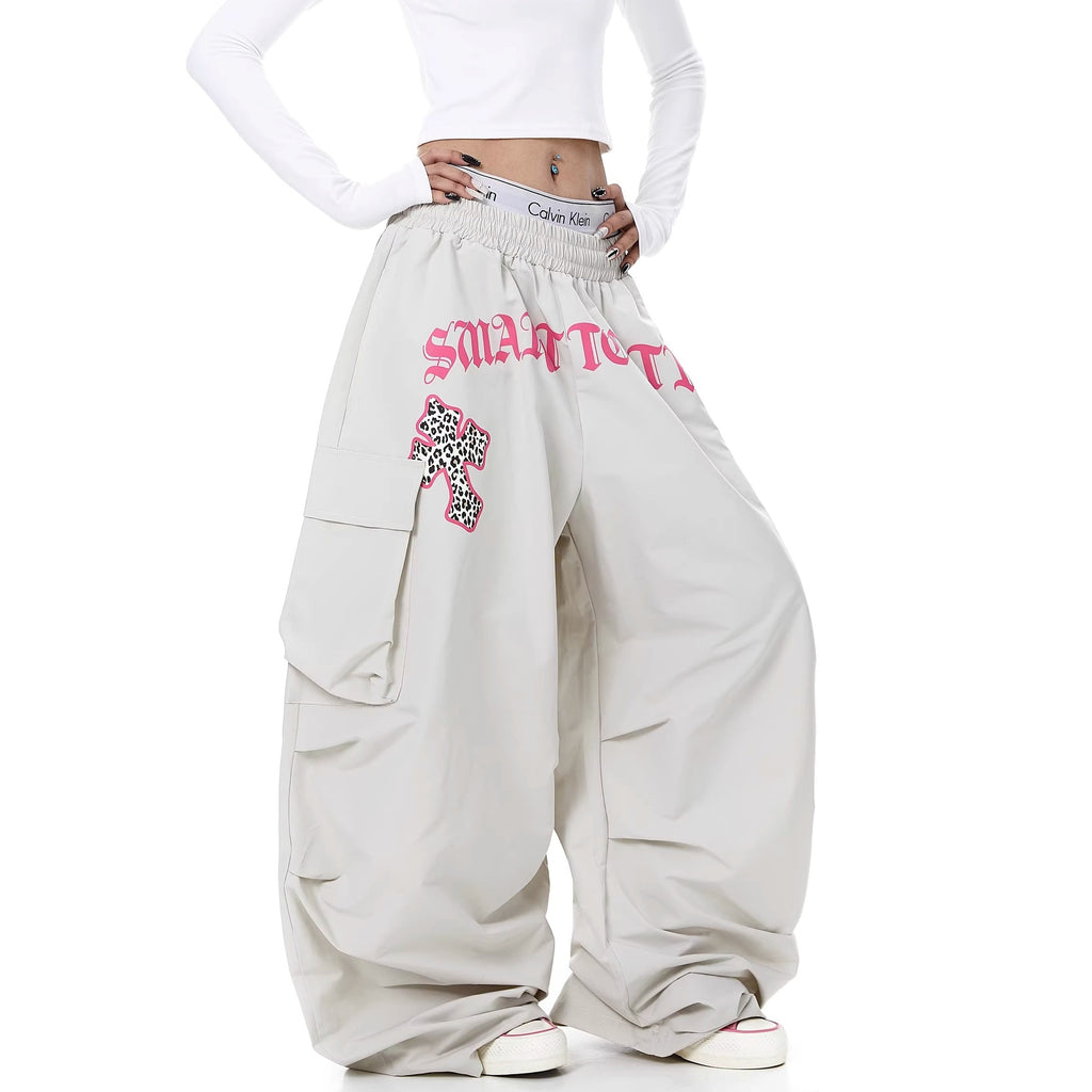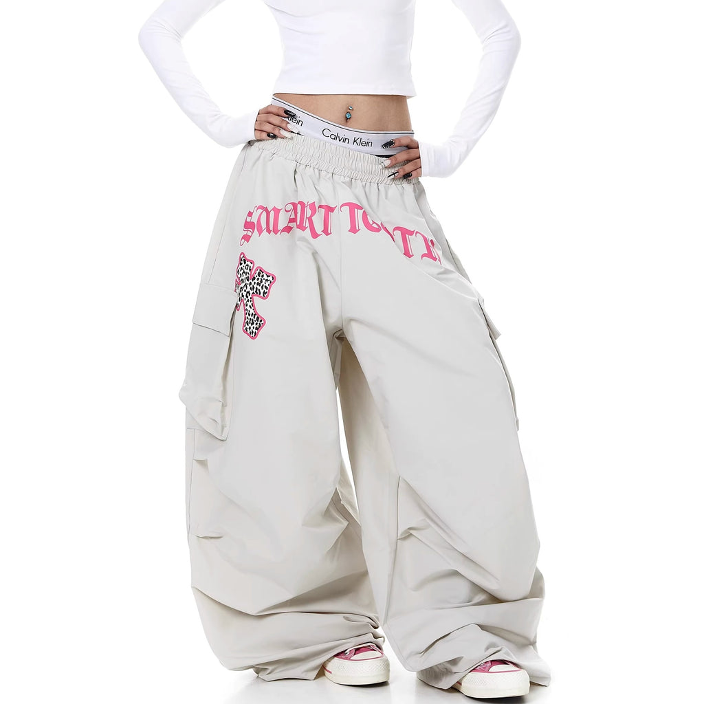 Letter Print Pleated Paratrooper Cargo Pants BK7074