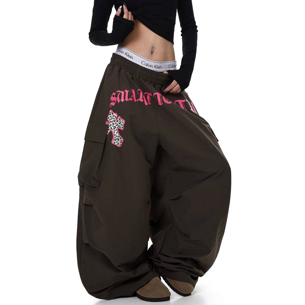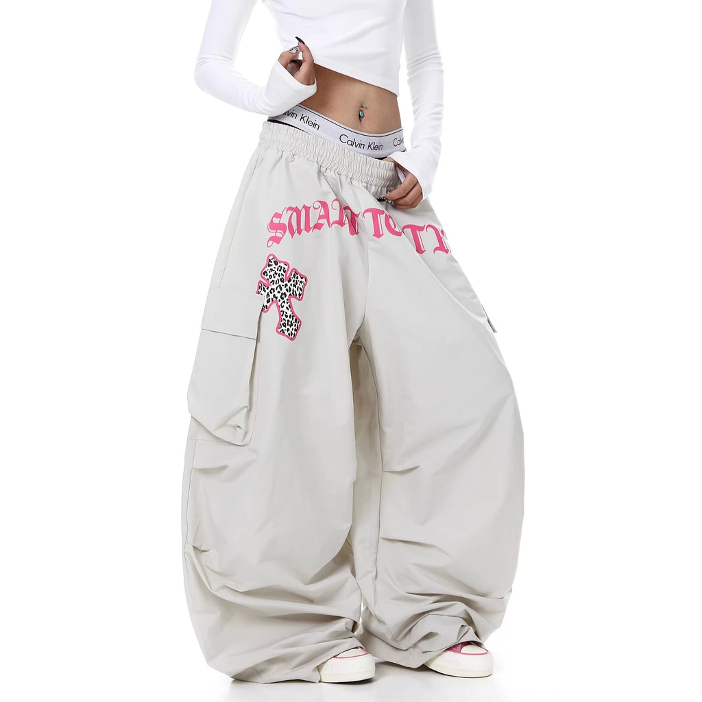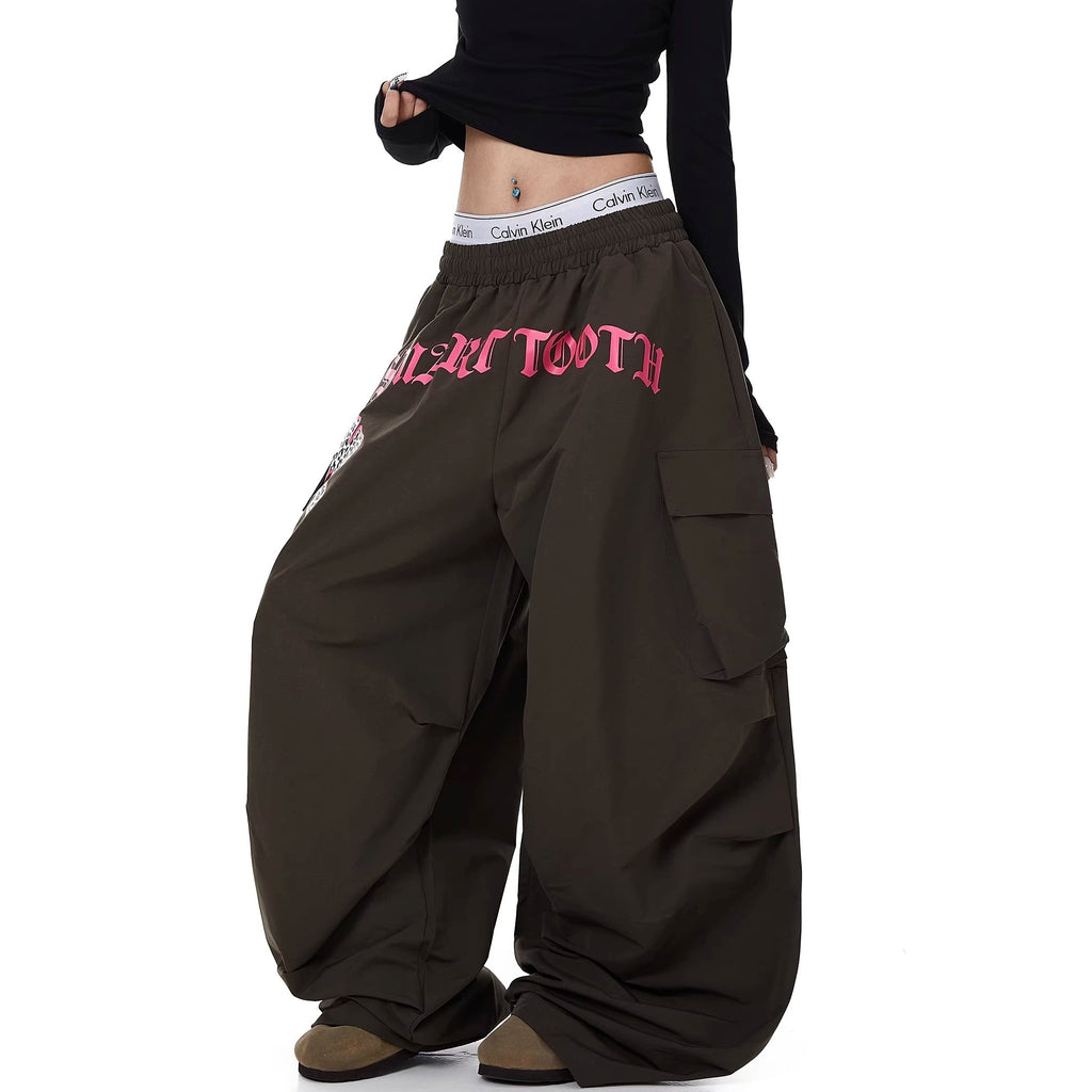 Letter Print Pleated Paratrooper Cargo Pants BK7074