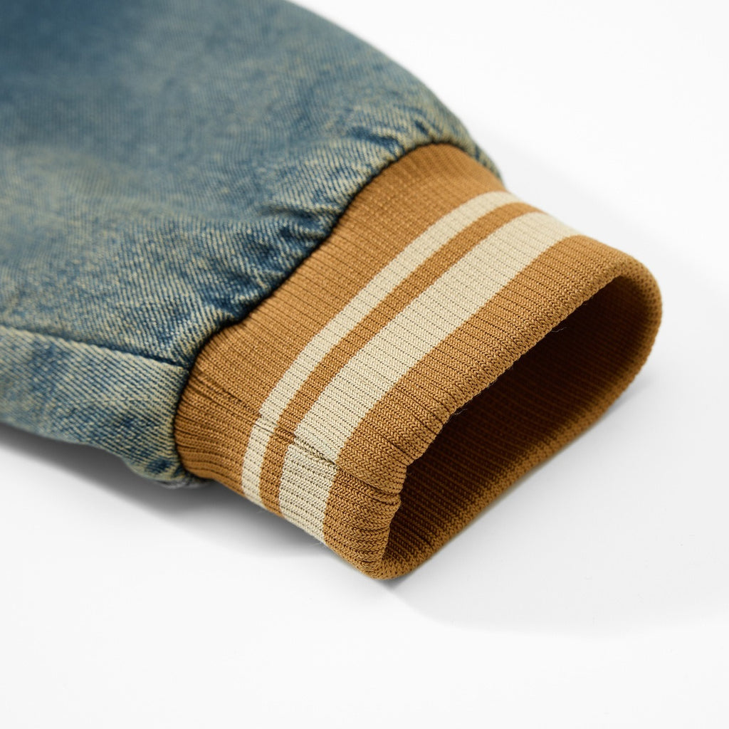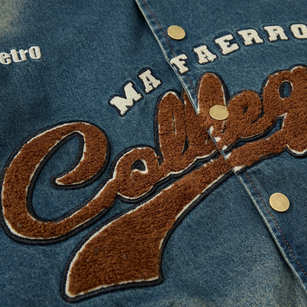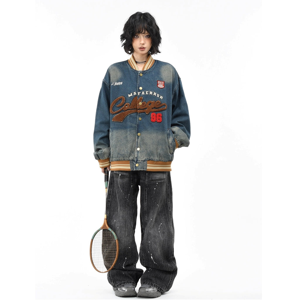 Retro Washed Embroidered Denim Baseball Jacket MW10303