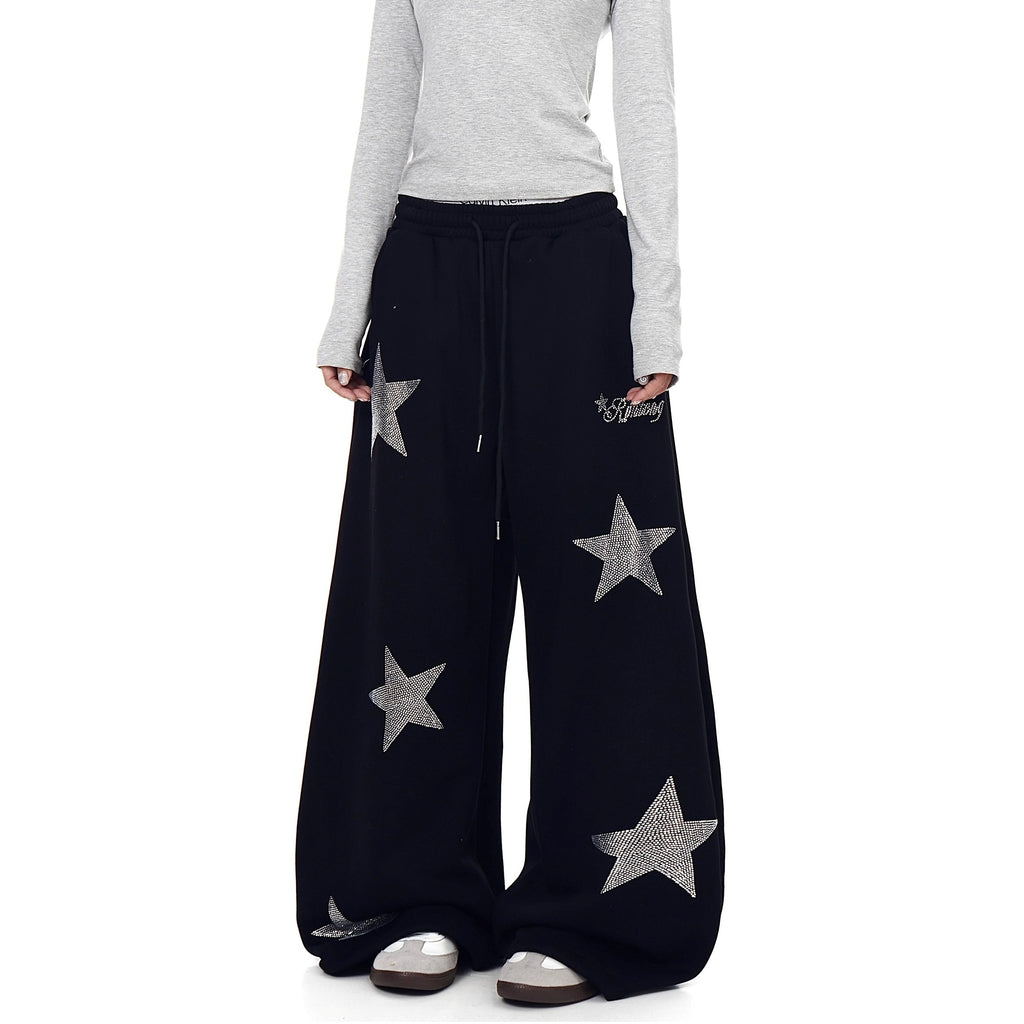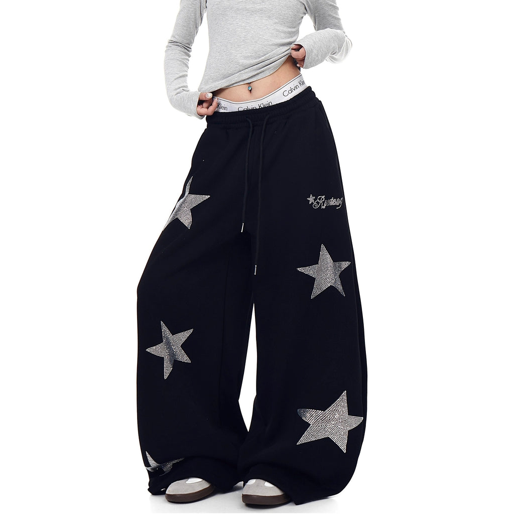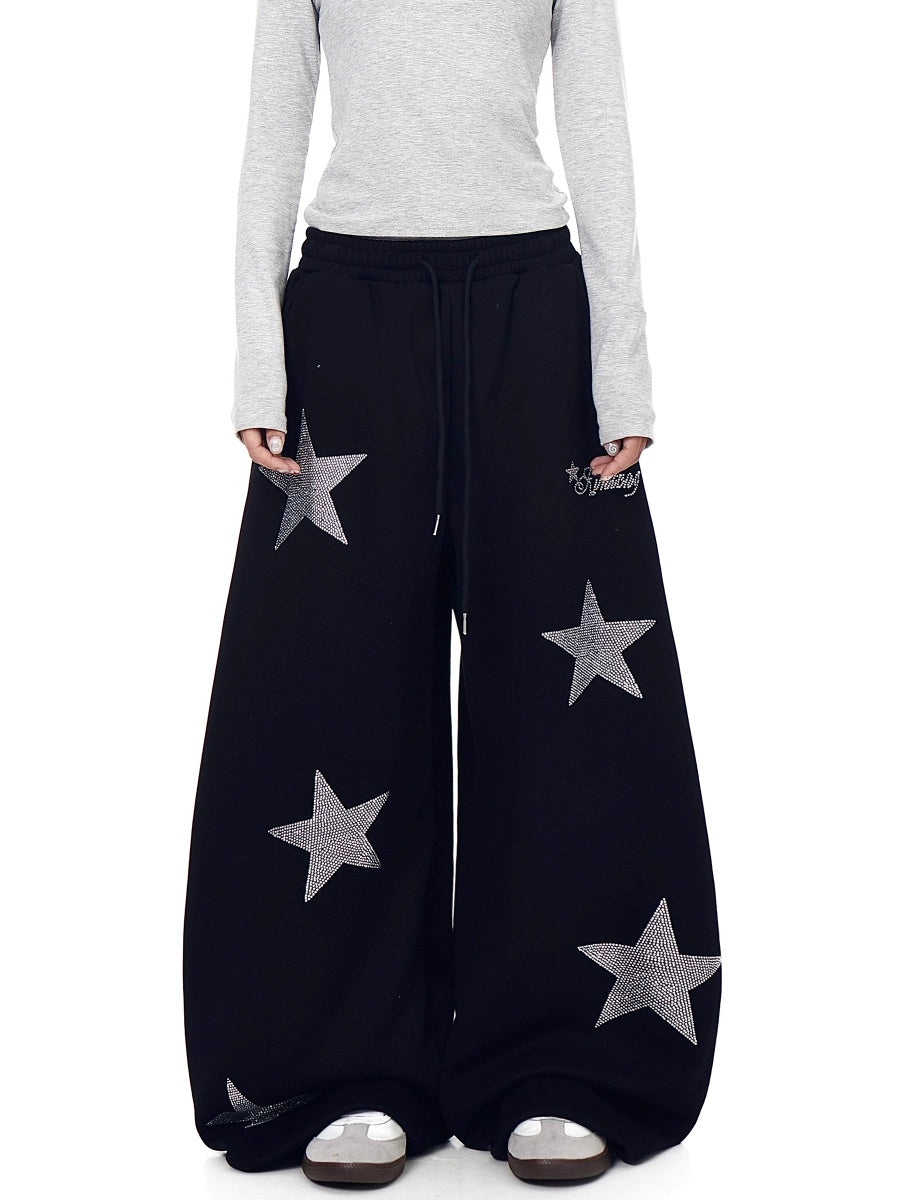Star Rhinestone Design Curve Sweat Pants BK7060