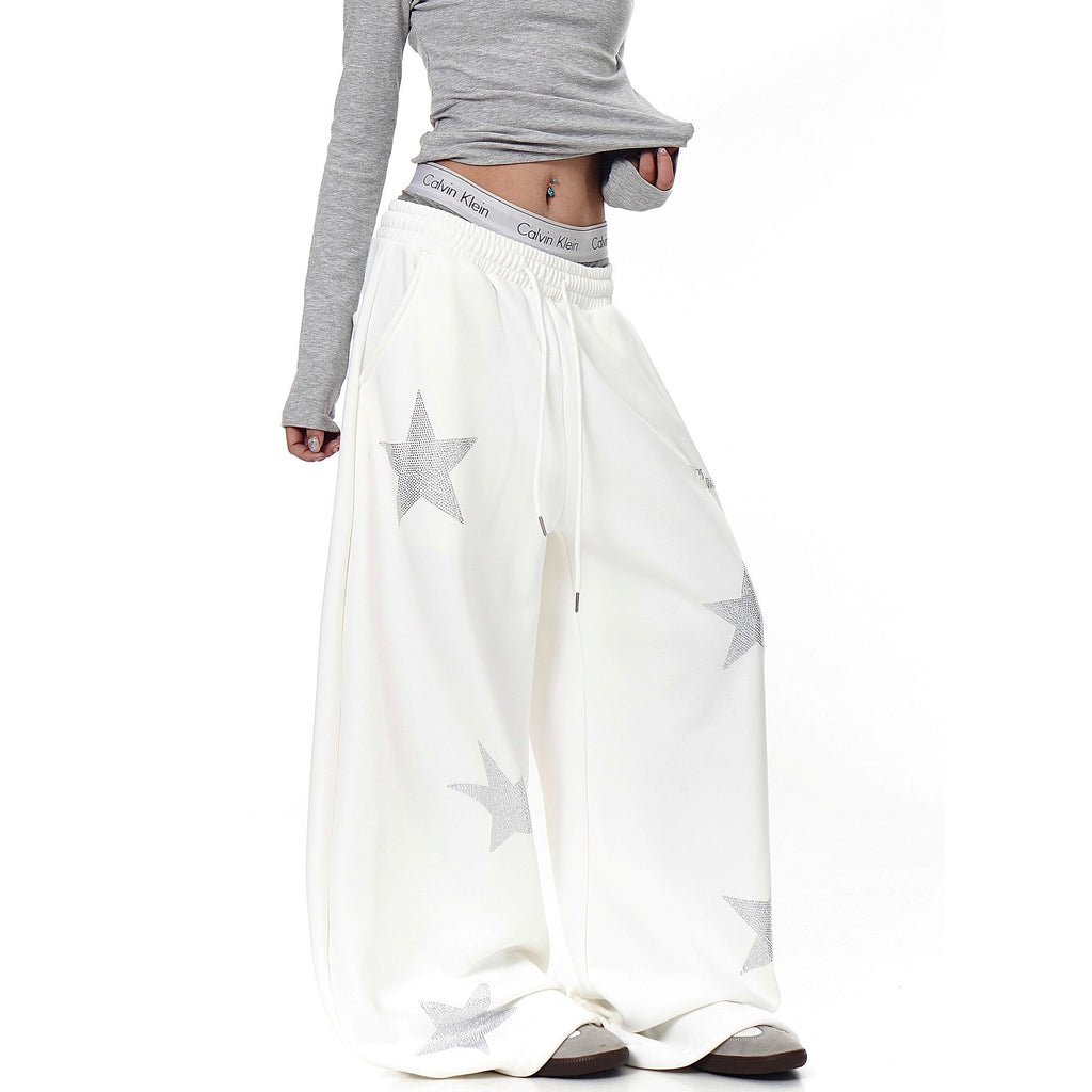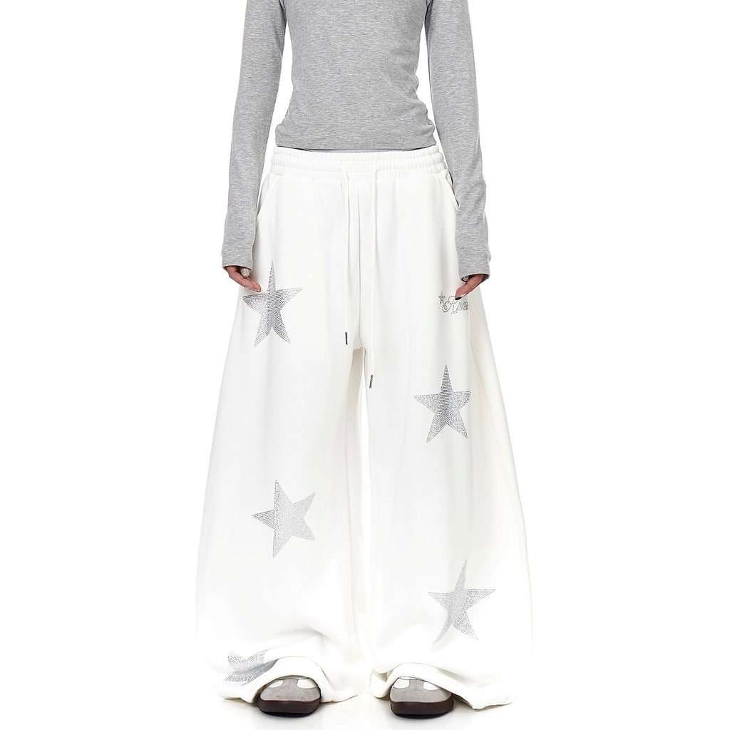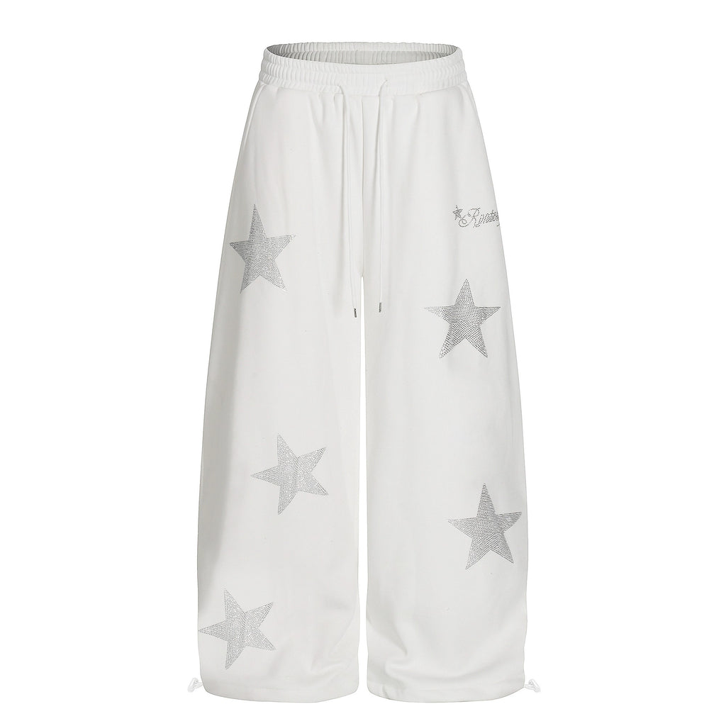 Star Rhinestone Design Curve Sweat Pants BK7060