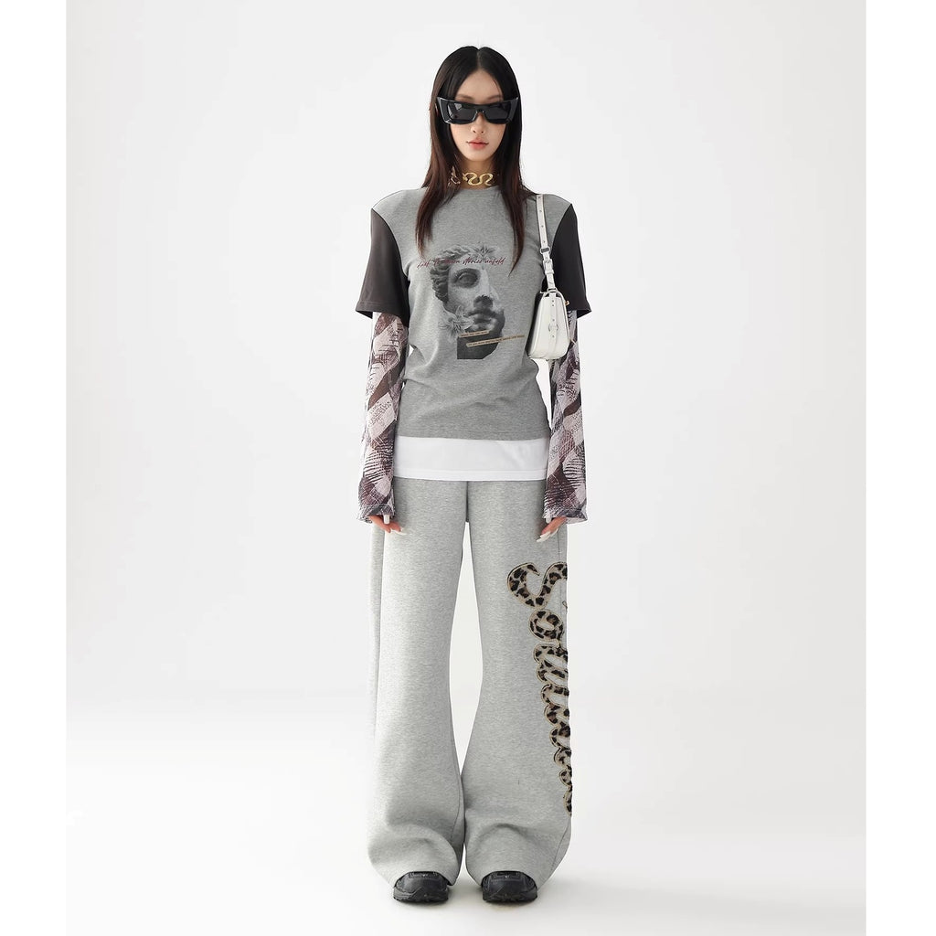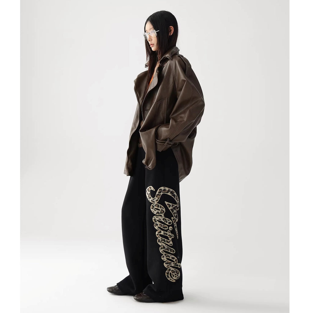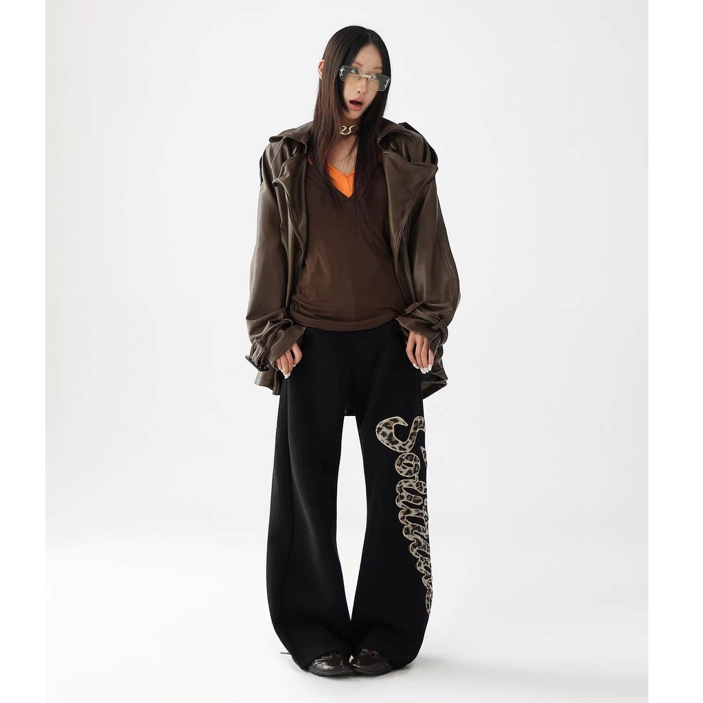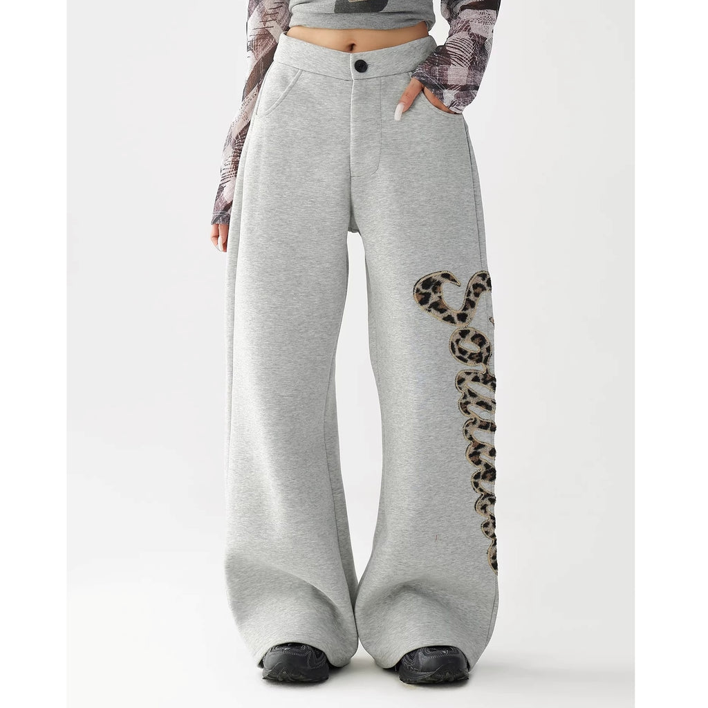Leopard Print Embroidered Straight Loose Sweat Pants AC7022