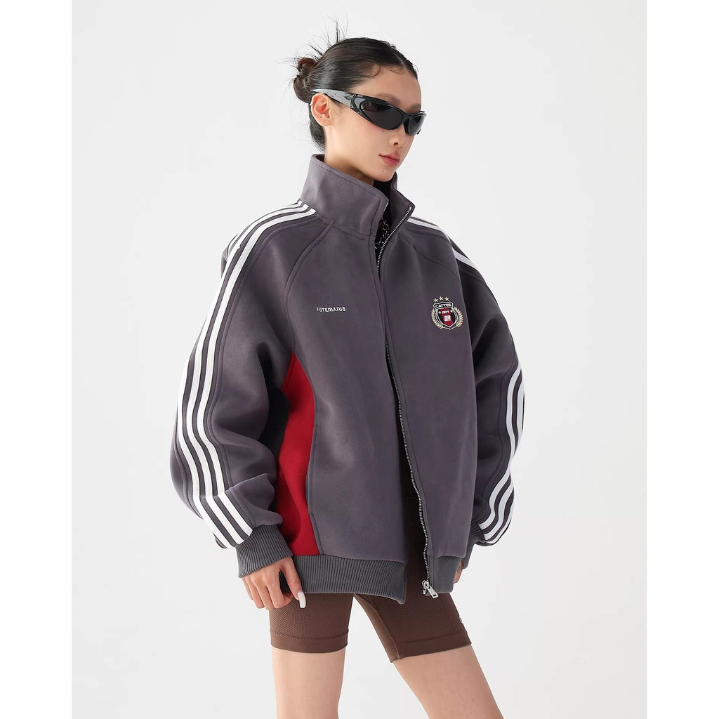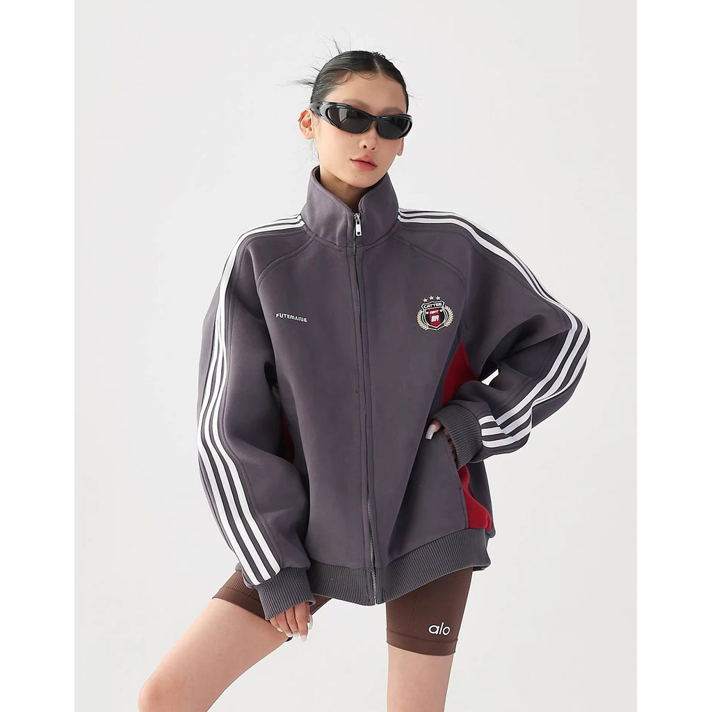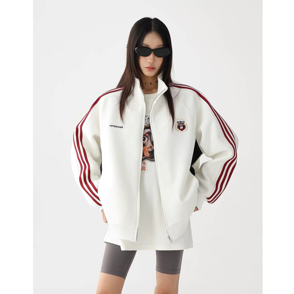 Preppy Embroidered Three-bar Sweat Jacket AC7021