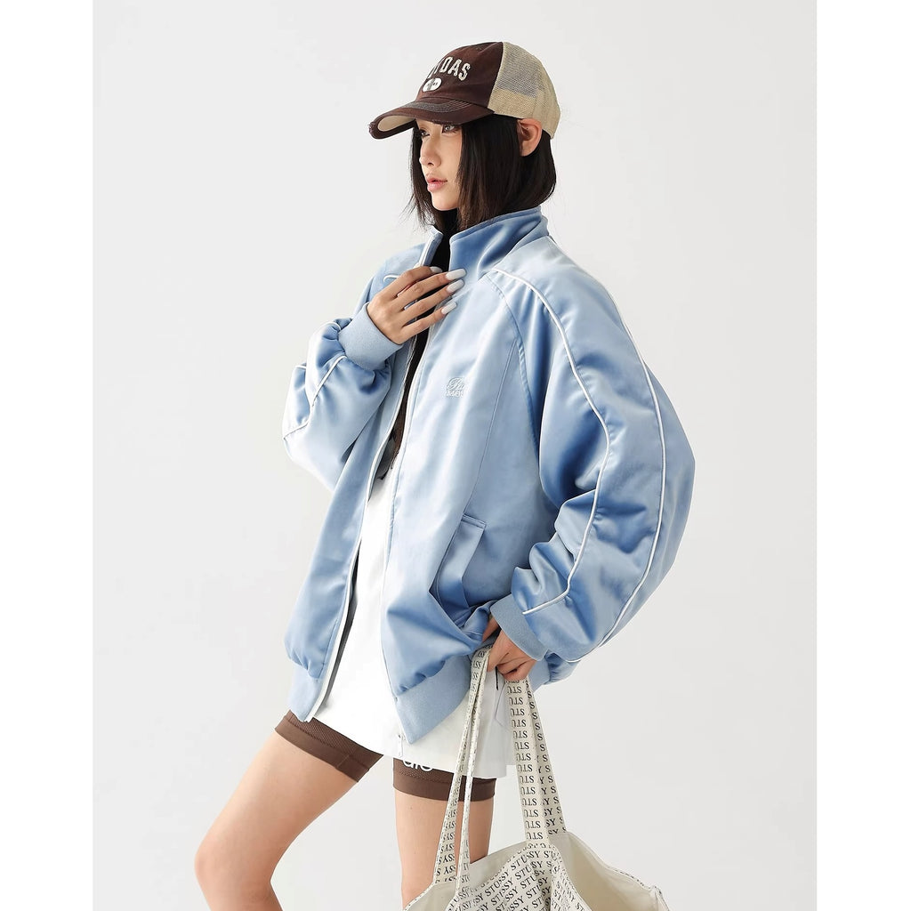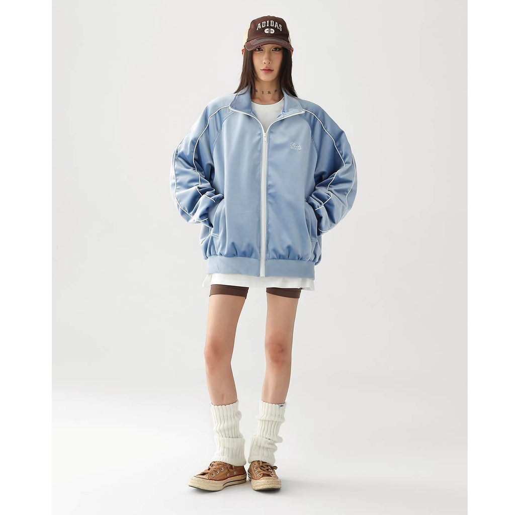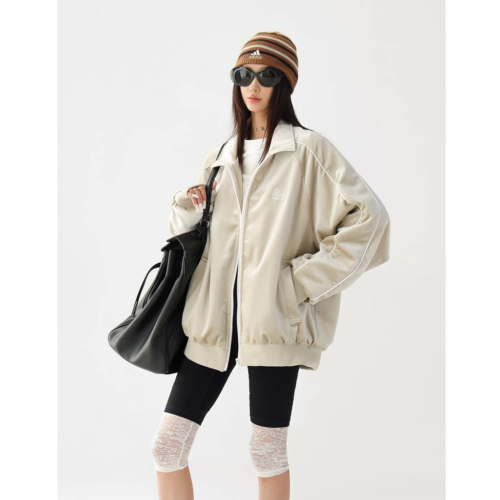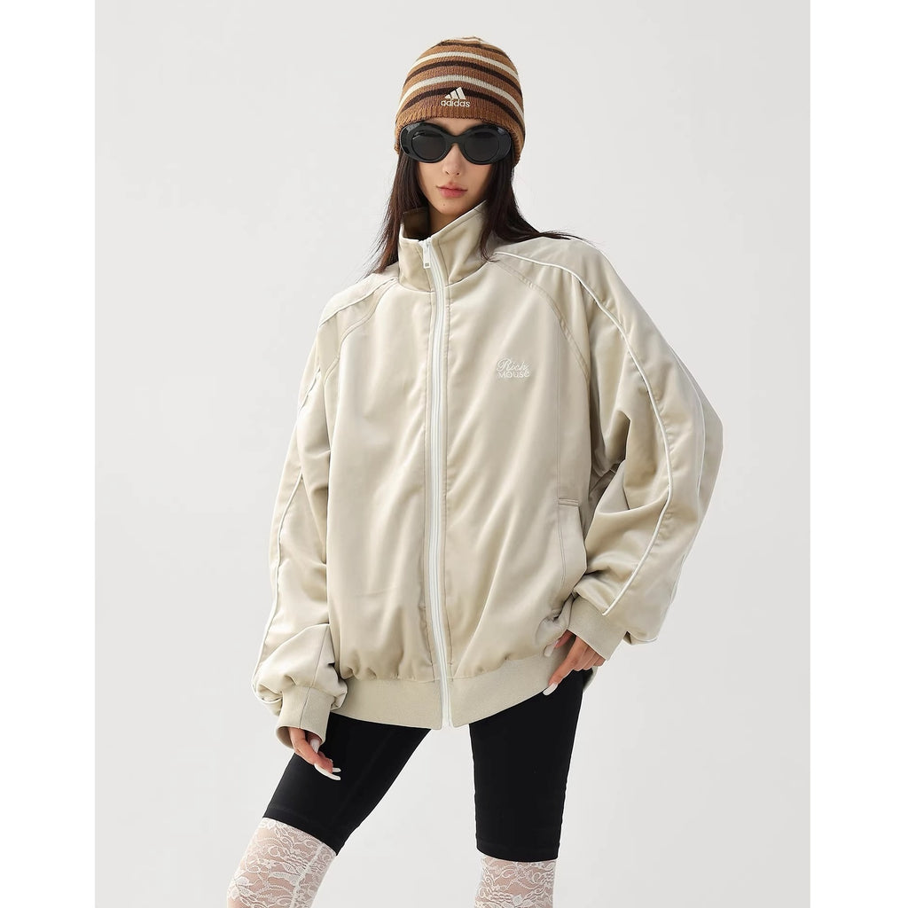 Reflective Paneled Stand Collar Velor Track Jacket AC7025