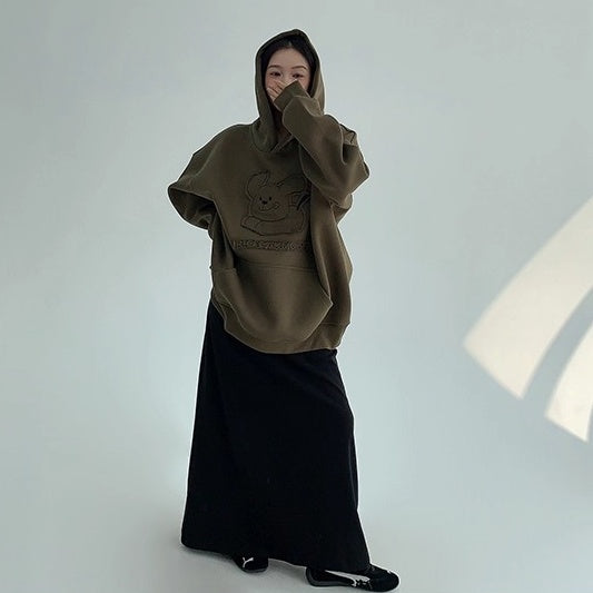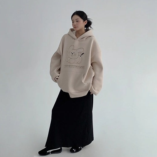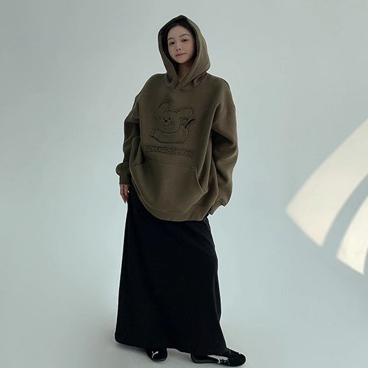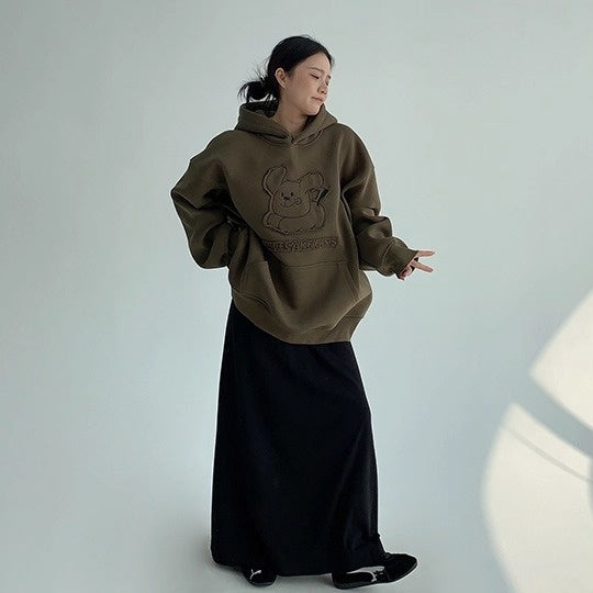 Retro Patch Embroidery Cartoon Plush Hoodie OS2070