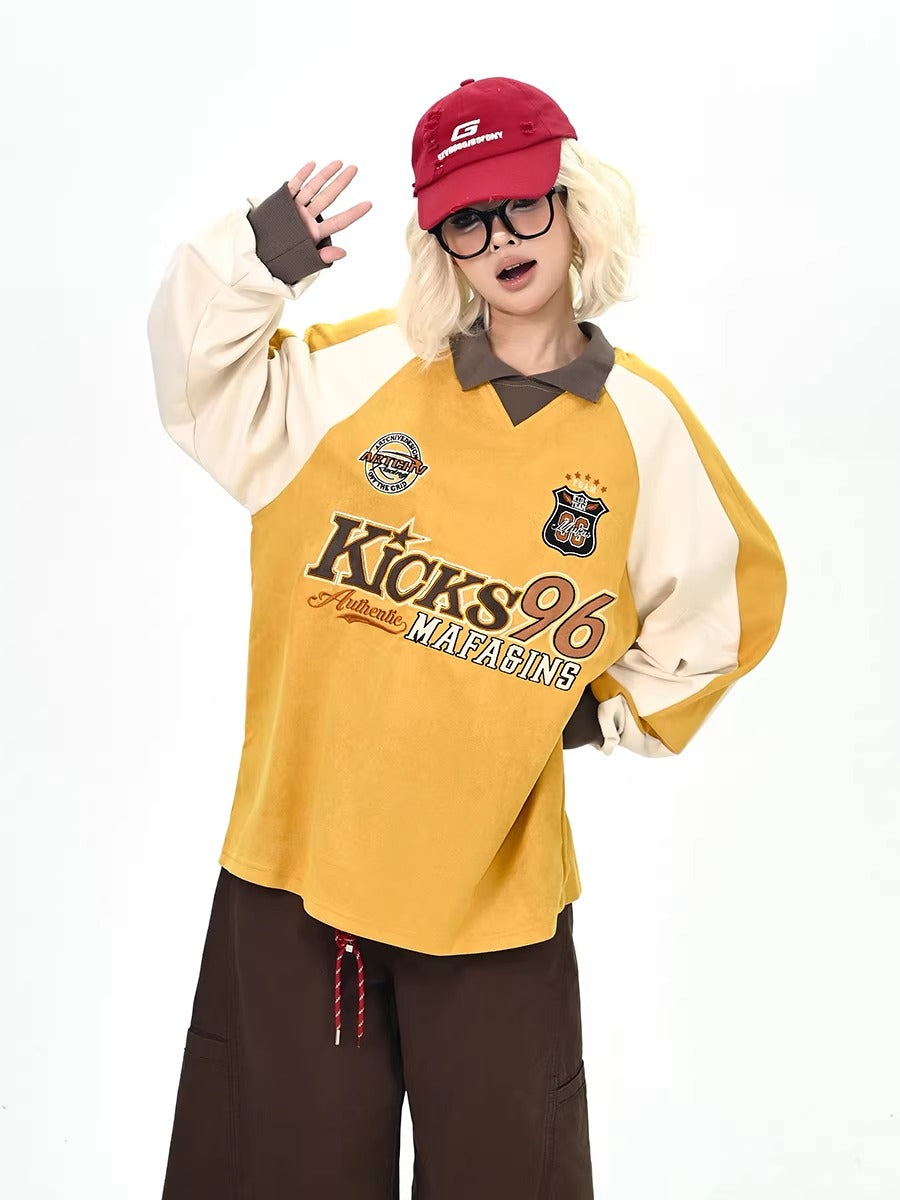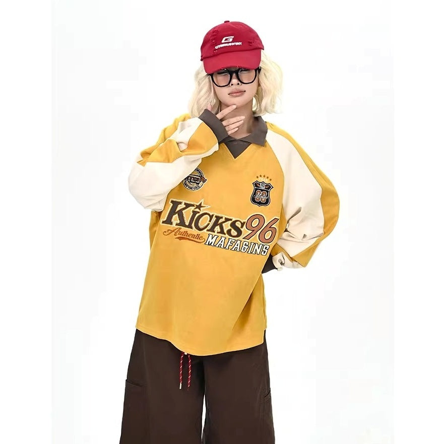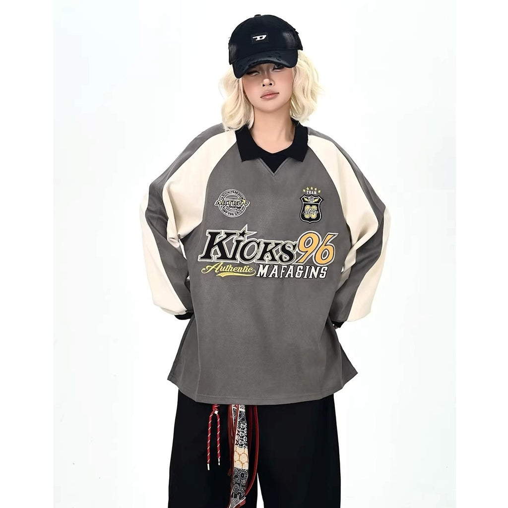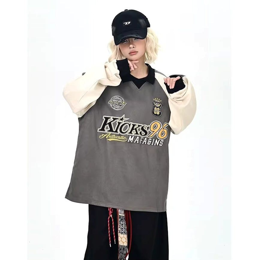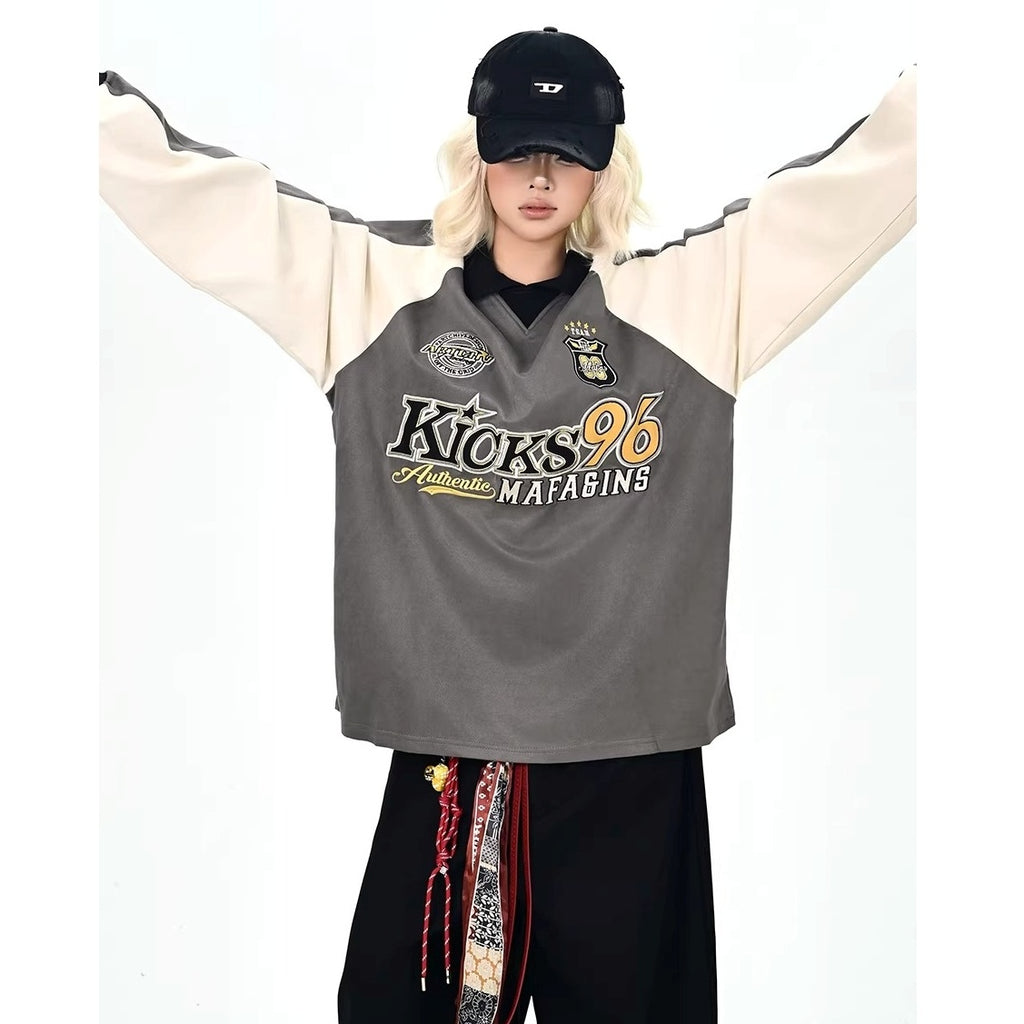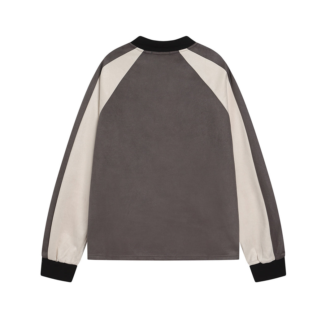 Color-Blocking Embroidered Lapel Sweatshirts MW10365