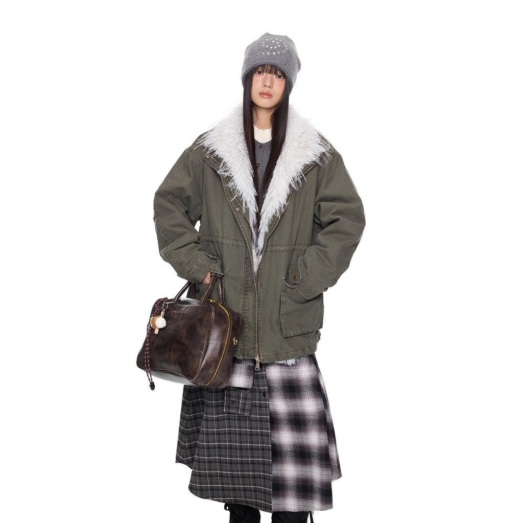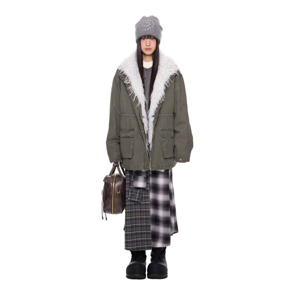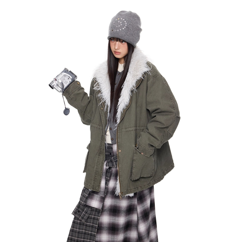 Hairy Stand Collar Washed Work Jacket EZ282