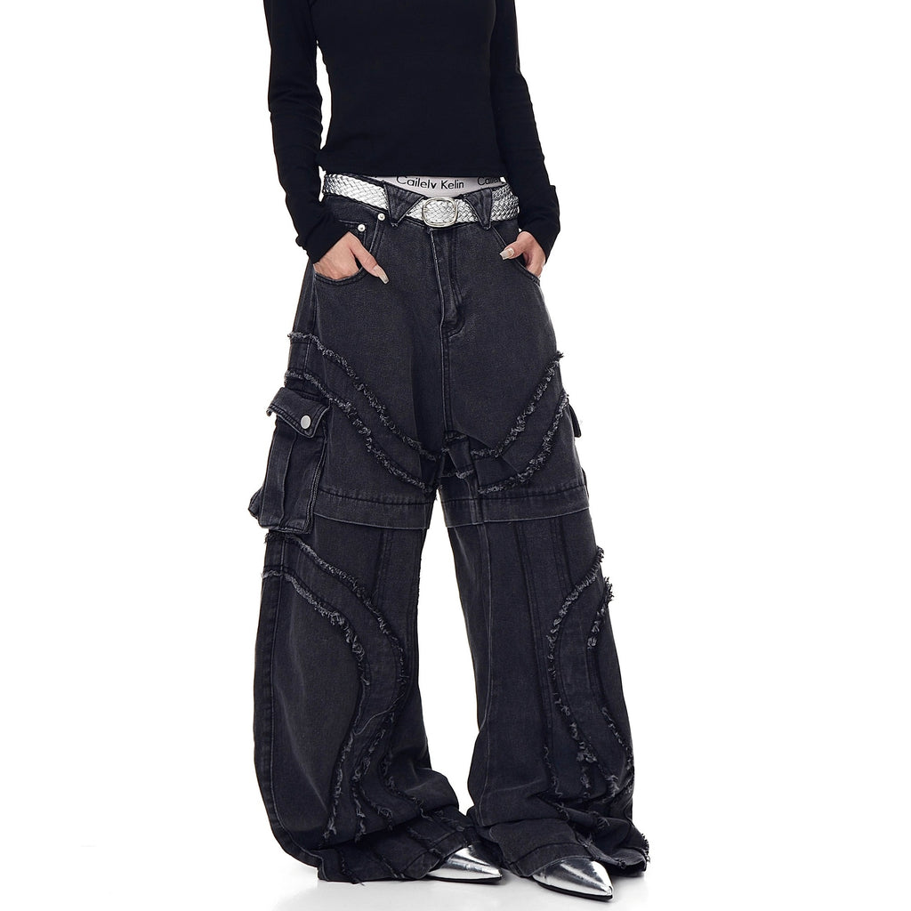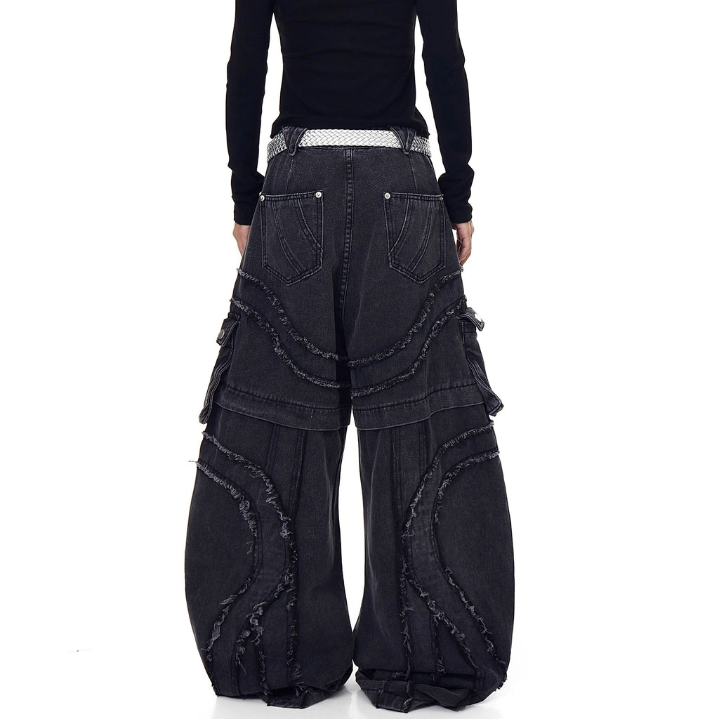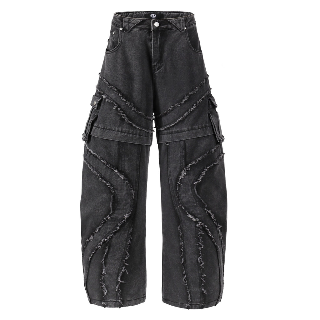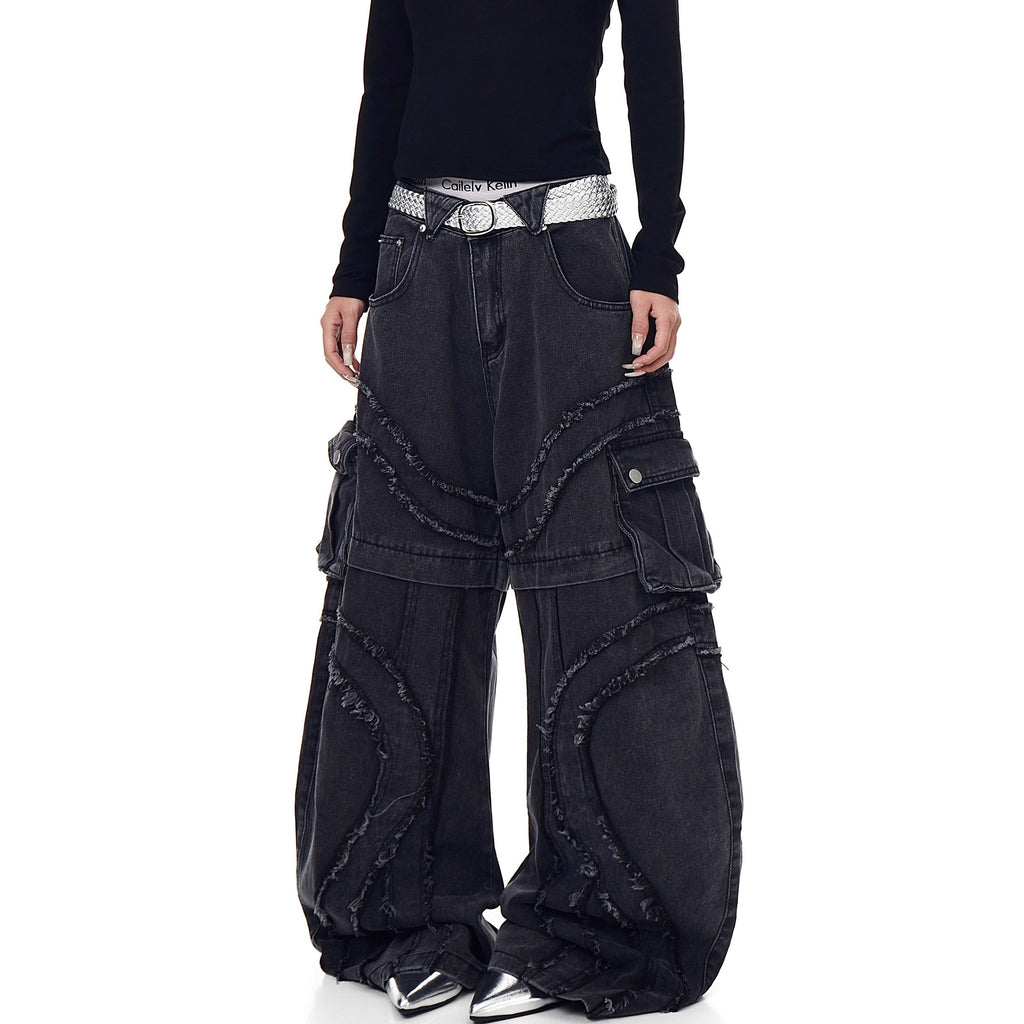 Raw Edge Switching Cargo Curve Jeans BK7027
