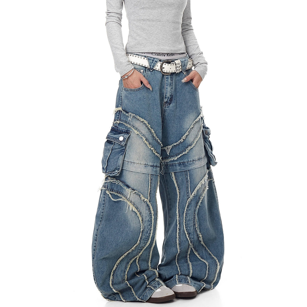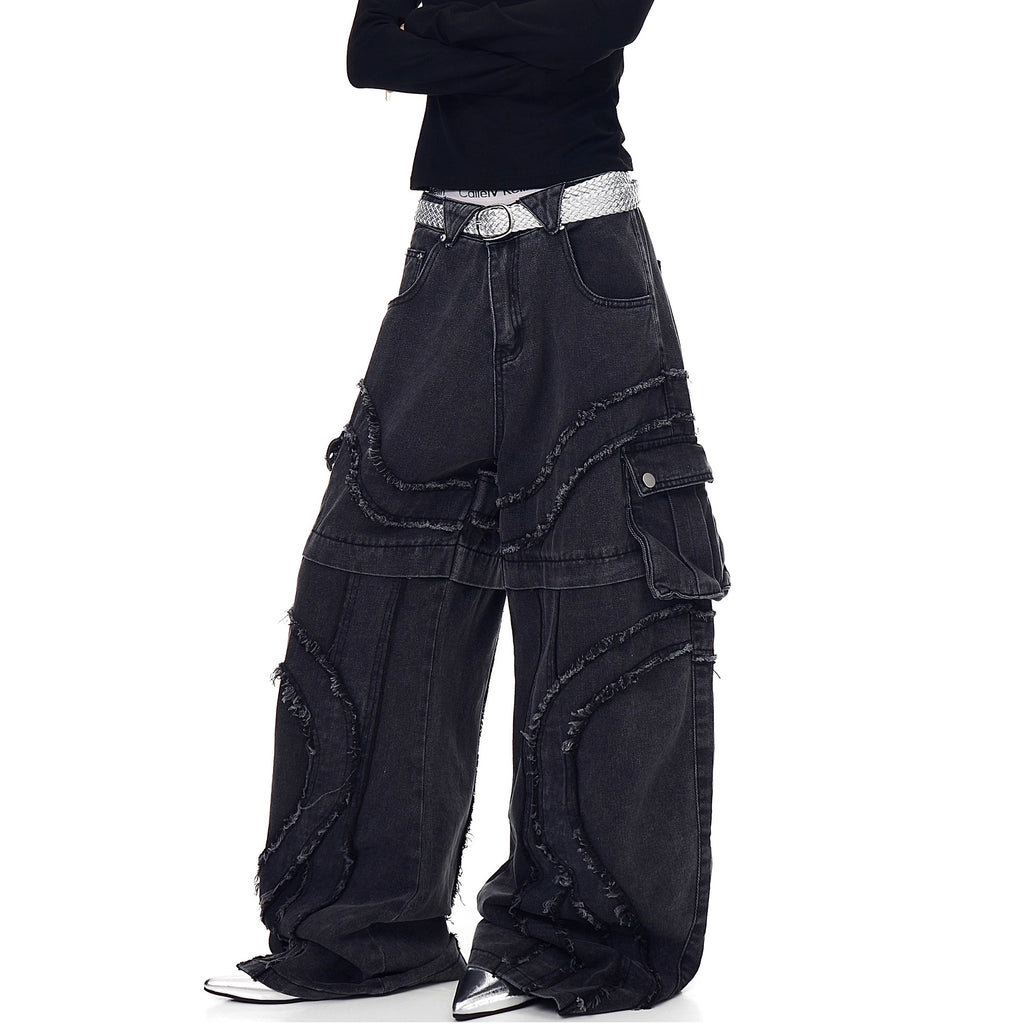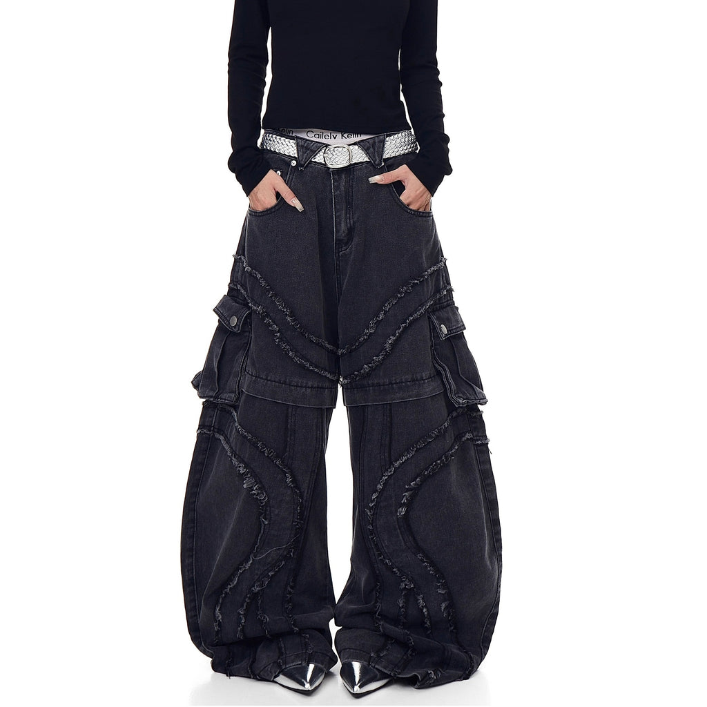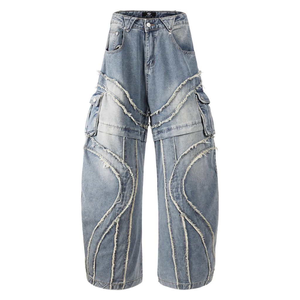 Raw Edge Switching Cargo Curve Jeans BK7027