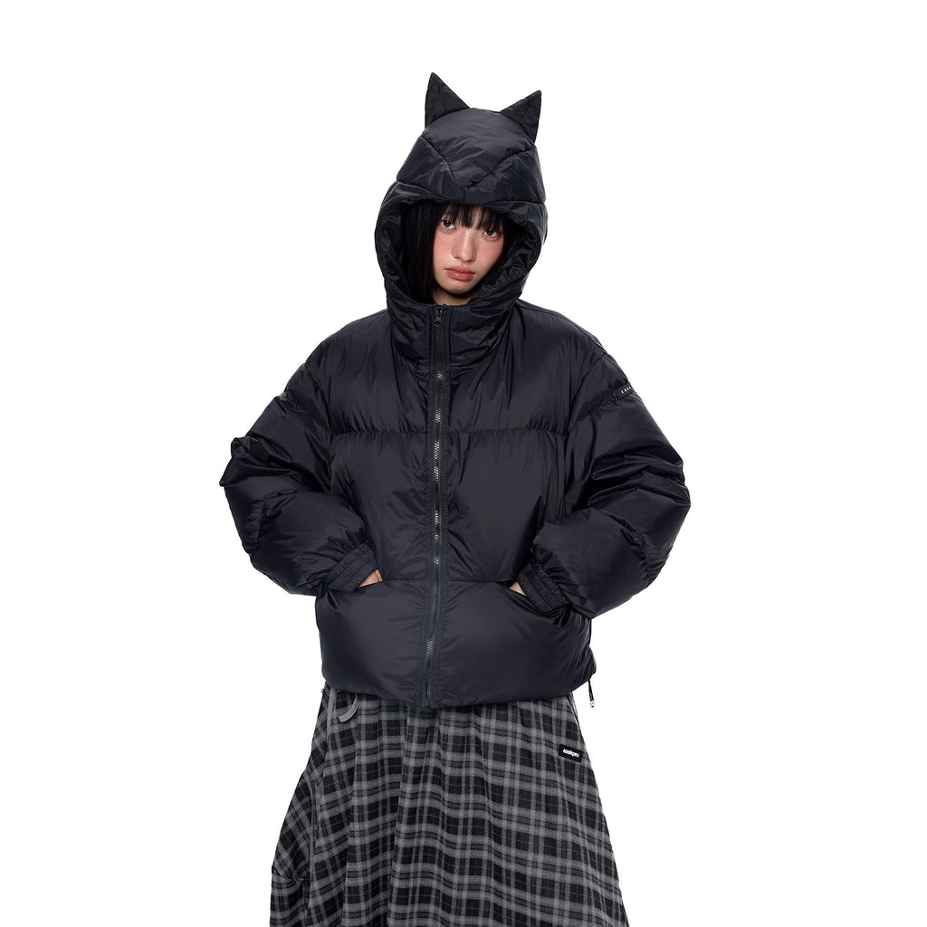 Small Ear Hooded Short Down Jacket EZ251