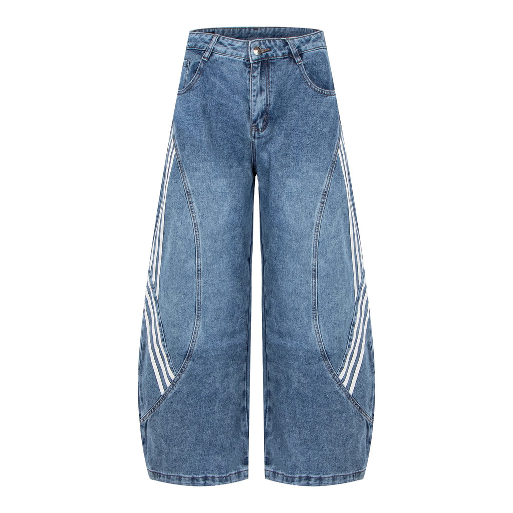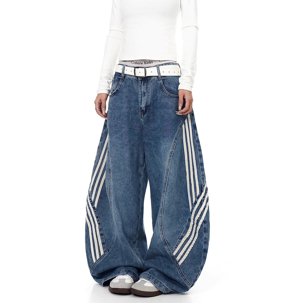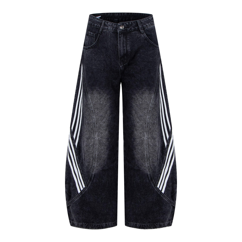Striped Patchwork Washed Scimitar Jeans BK7031