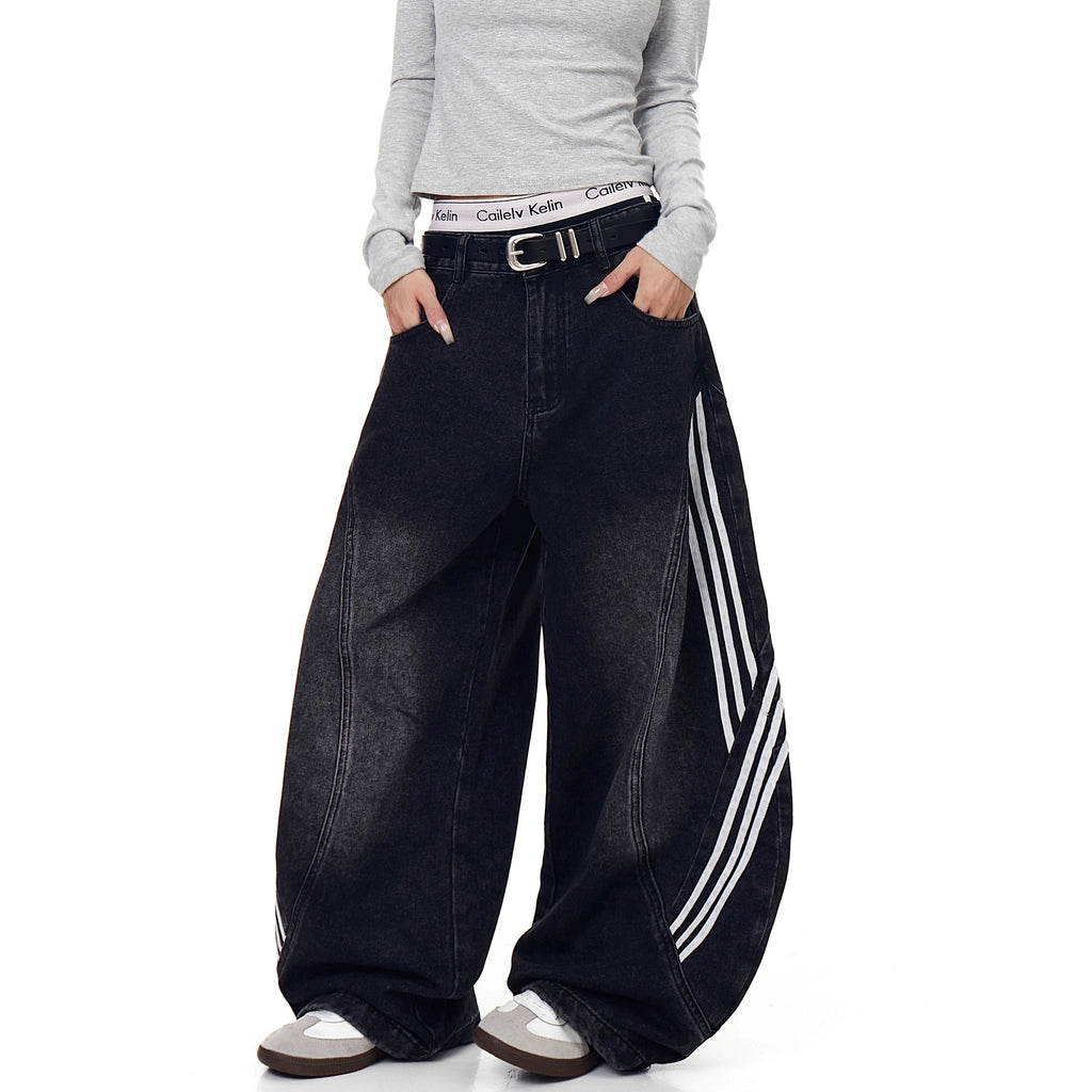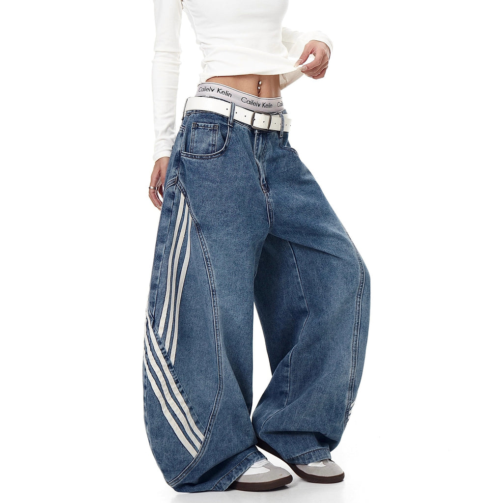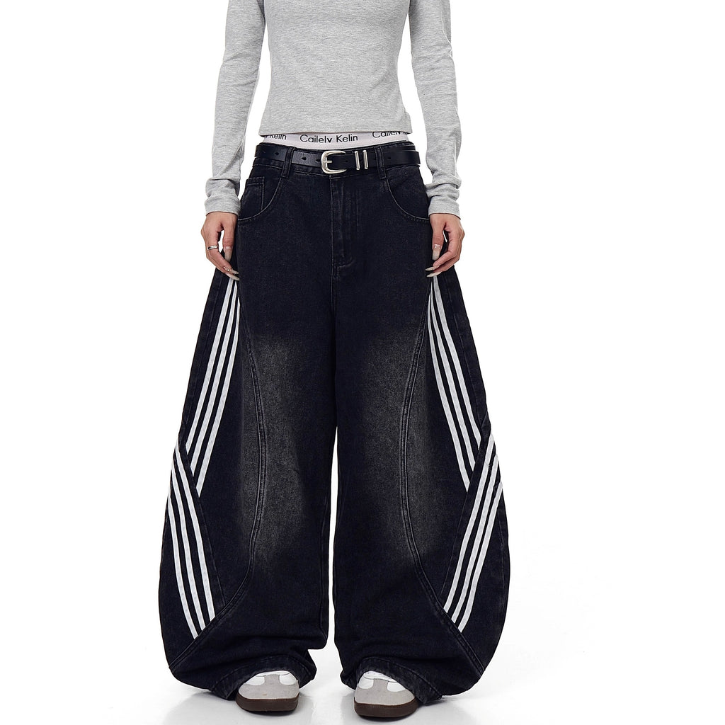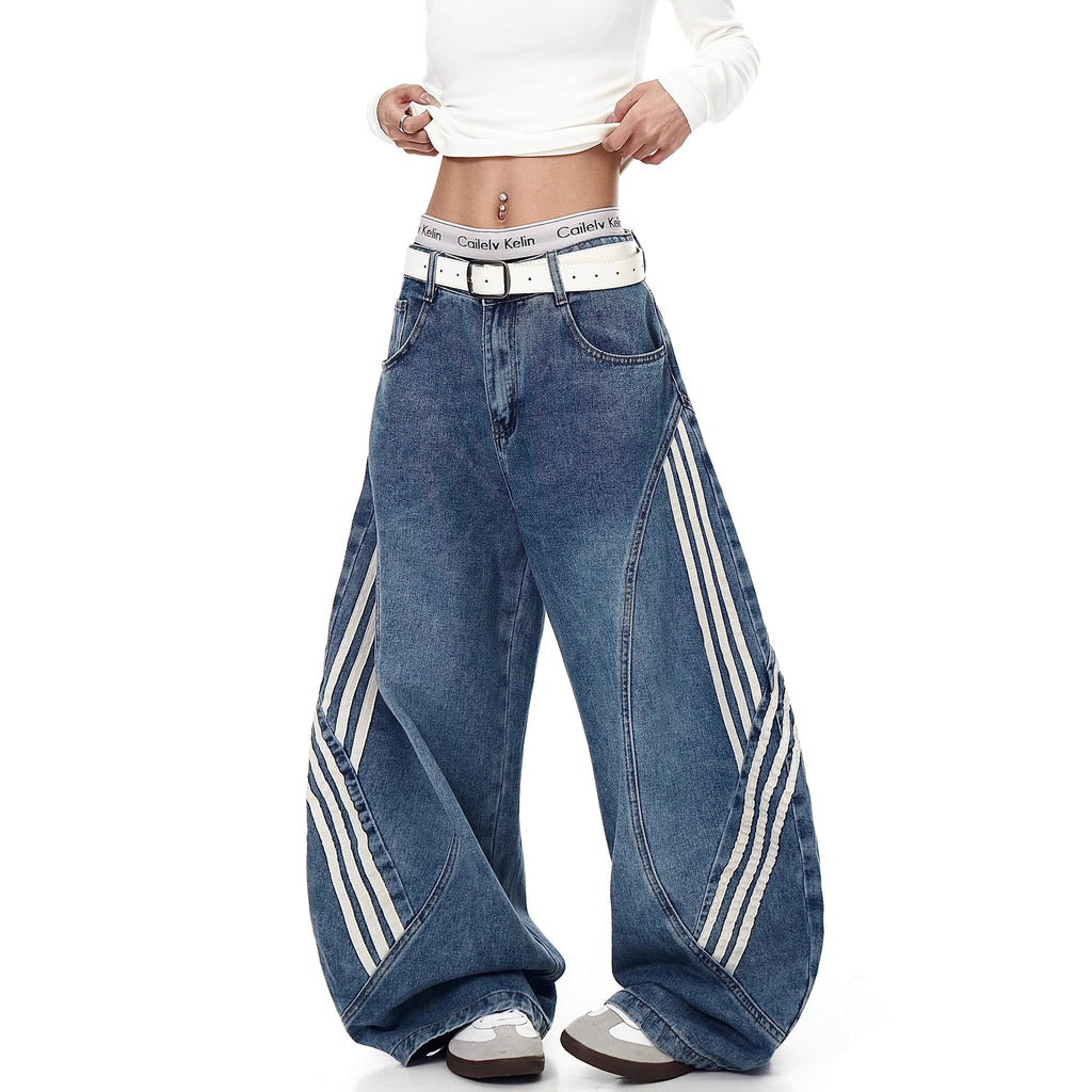 Striped Patchwork Washed Scimitar Jeans BK7031