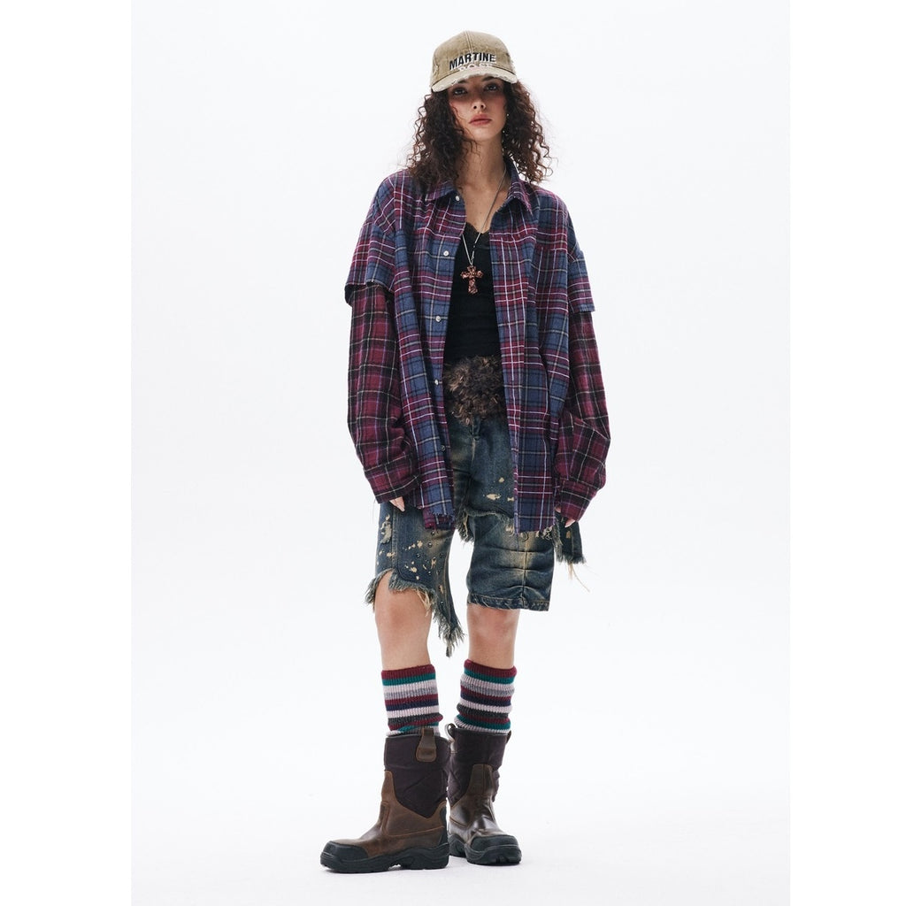 Switching Design Loose Plaid Shirt MW10040