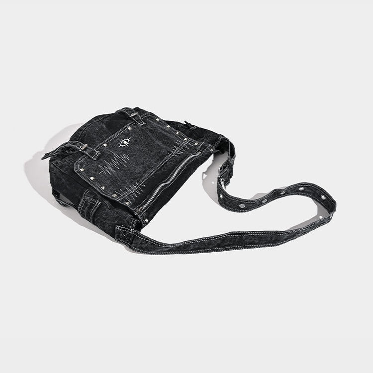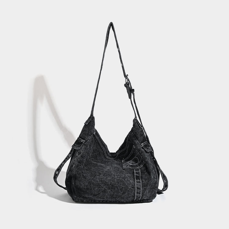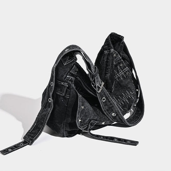 Washed Denim Rivet Commuter Shoulder Bag MW10327